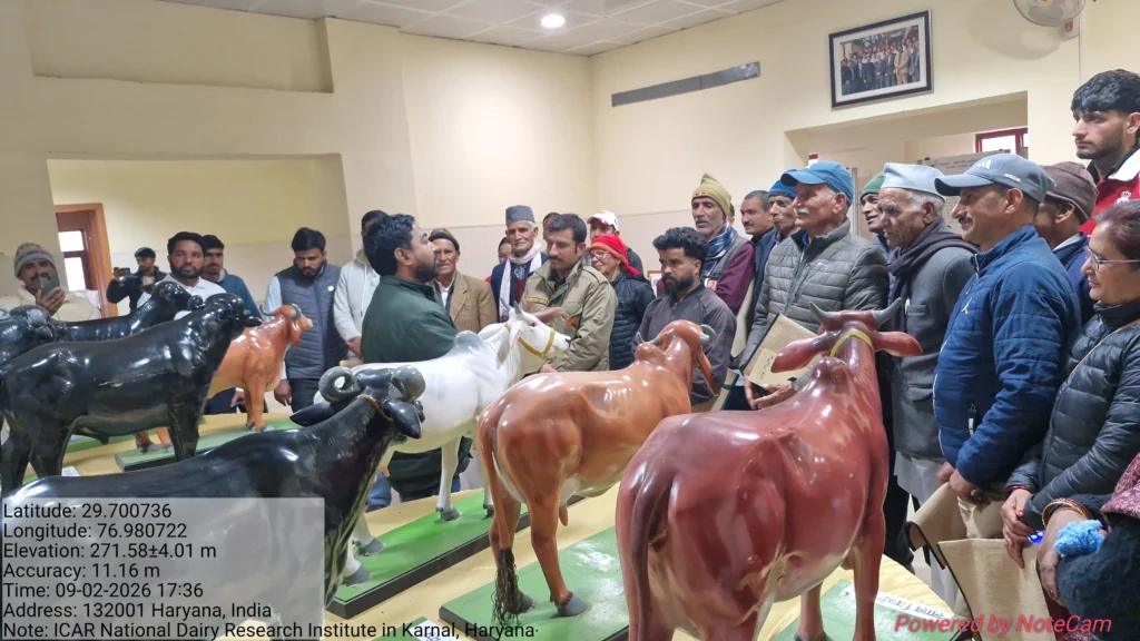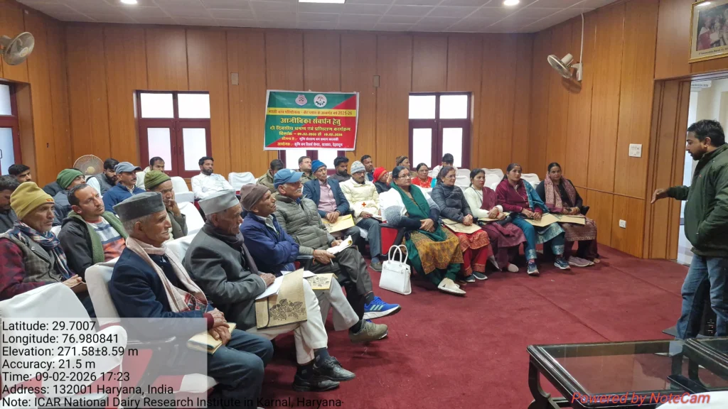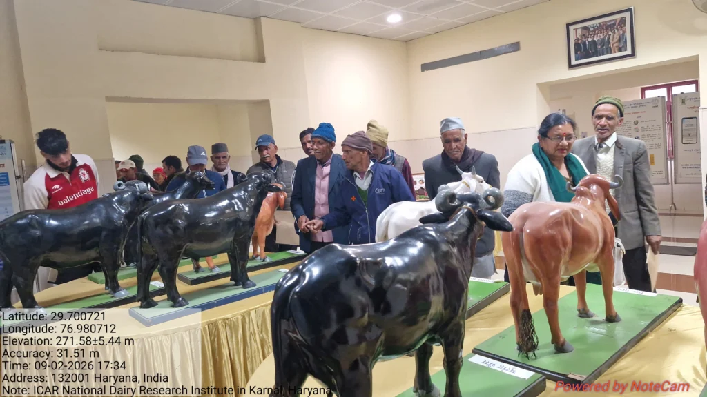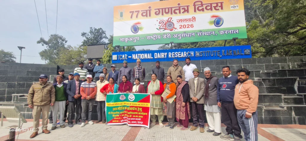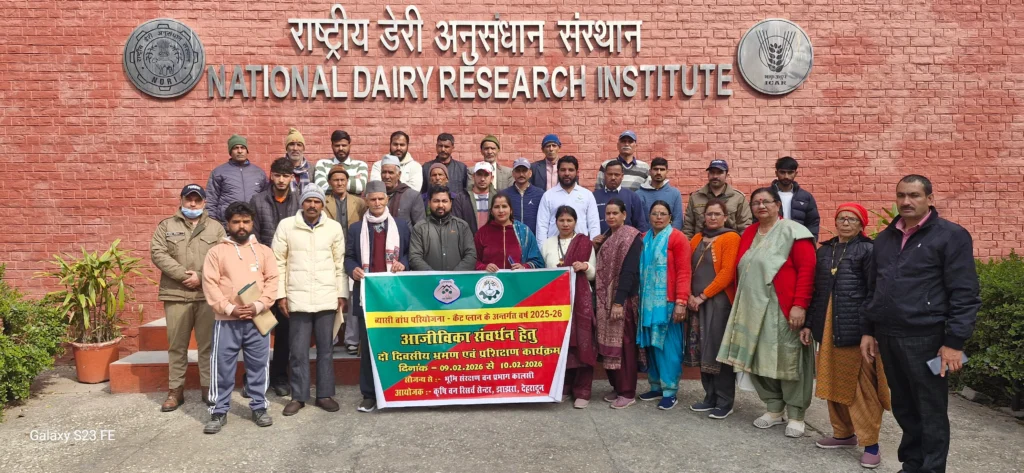 A two-day educational exposure visit and training program was organized on 9–10 February 2026 at the National Dairy Research Institute (NDRI), Karnal, Haryana, for farmers and participants from Uttarakhand. The program was conducted with the support of the Soil Conservation Forest Division, Kalsi, and the Krishivan Research Center for Agripreneurship Development and Environment Protection Committee, Dehradun. A total of 36 participants took part in the training, aiming to enhance their knowledge and technical understanding of modern dairy farming practices.
